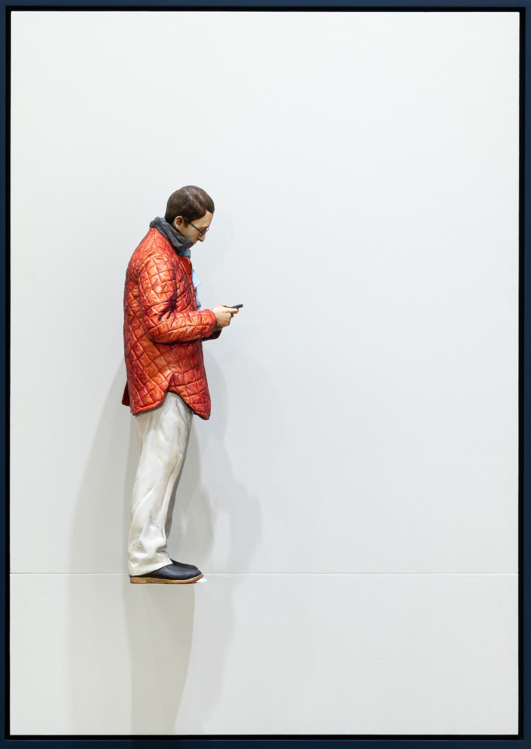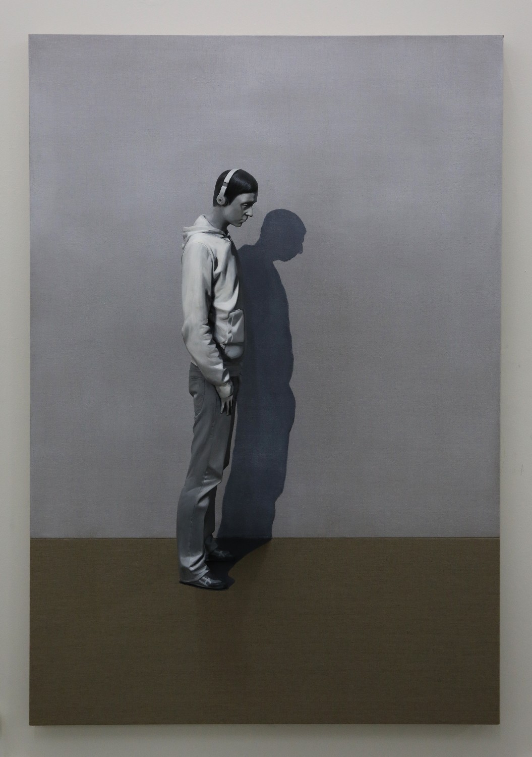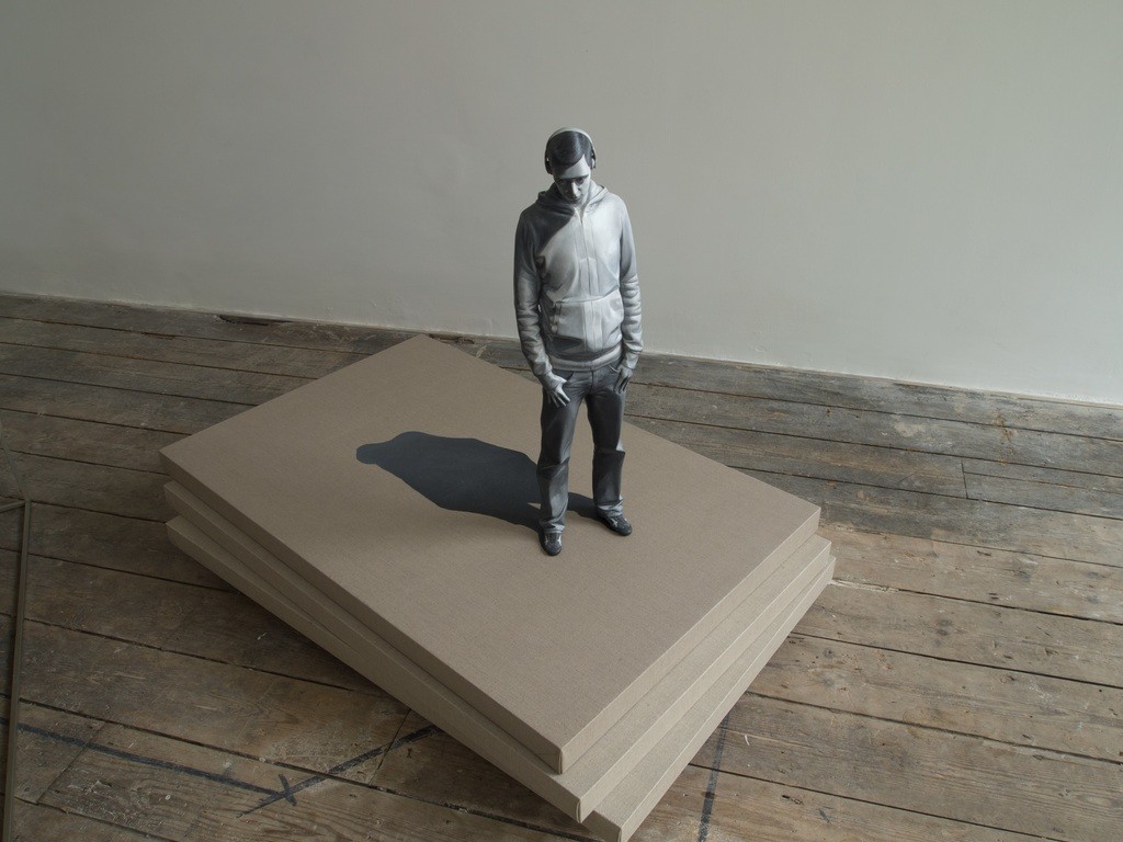 My work is an attempt to capture an instant moment of the moment [刹那, chalna]; especially those moments of enlightenment imbued in my memory. In my work, I tried to embody the imprinted moments formed with psychological altitude, emotional element, a new discovery or an opposing element of experienced. And to have the temporal concept of the “present” in which the circumstances occurred expressed as an artwork, the contrast and coloration extracted from the “present” were transferred on the sculpture of human body. The work has colored contrast with strong shading. Because I believe a shadow of any shape can represent a moment of the time. For example, in a sundial, a shadow points to a single number, and I looked more focused on the shape of the shadow rather than on the number. If we had such an ability to distinguish a shape from similar shapes of shadows to the other, we would have been able to suppose a time by looking at the shape of the shadow I wanted the audience to sympathize and reach the scenes of my memories and to share by looking through the "sculpture of the human body” - it should not be stereoscopically formed but similar and a collection of images - from a circumstance. A scene in memory could be seen in black and white or in color, it is also like a touchable object yet just a plane image. In fact, I do not know clearly. I assume my work process is an act of tracing the memory. I’ve done works in black and white and color, and I’ve also done placing it on the floor or work platform and installed on the wall. Some parts of the work exist as sculpture objects, and they also exist as images. For example, some wrinkles of clothes were carved, when some others were depicted by brush touches.