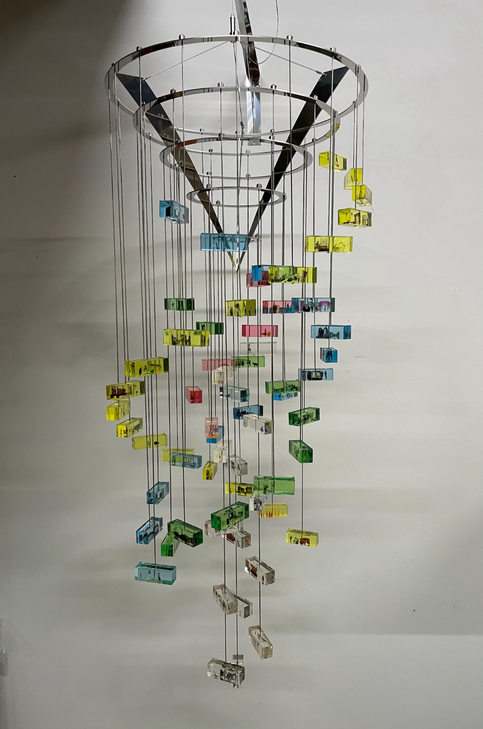 2022 · Acrylic paintings on overhead transparency, stainless steel polished, epoxy resin cubes