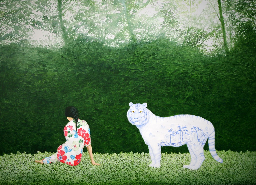 A strange scene with a tiger