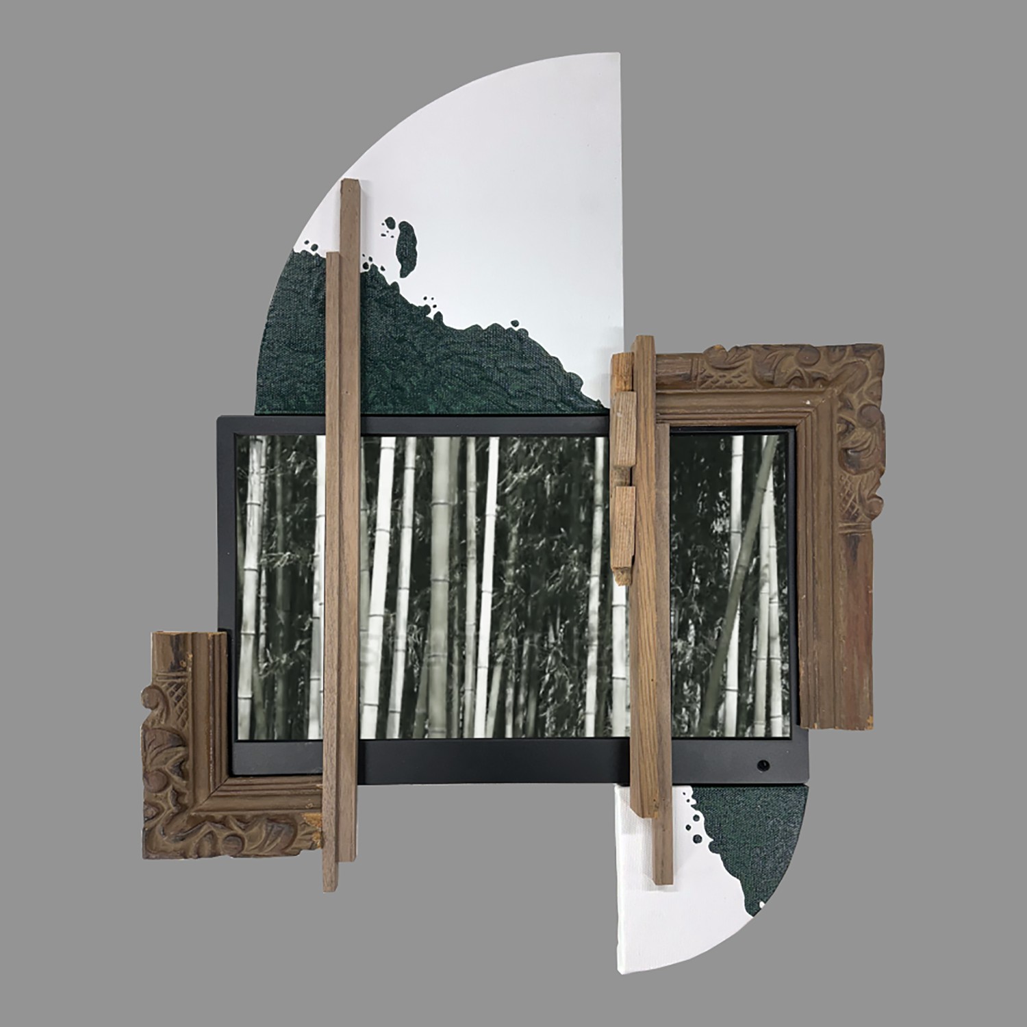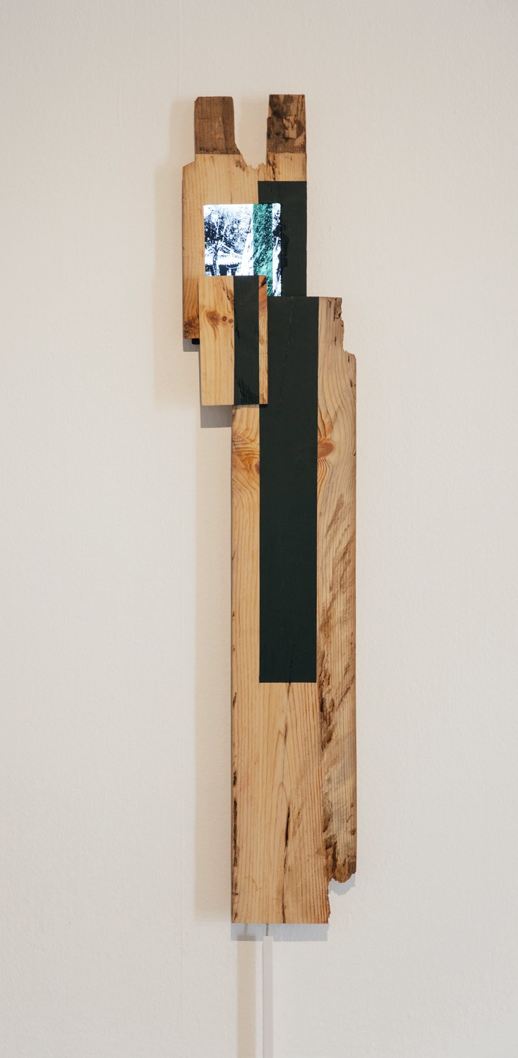 2024 · Sculpture with single-channel video on LED screen (wood, canvas, 13inch monitor)