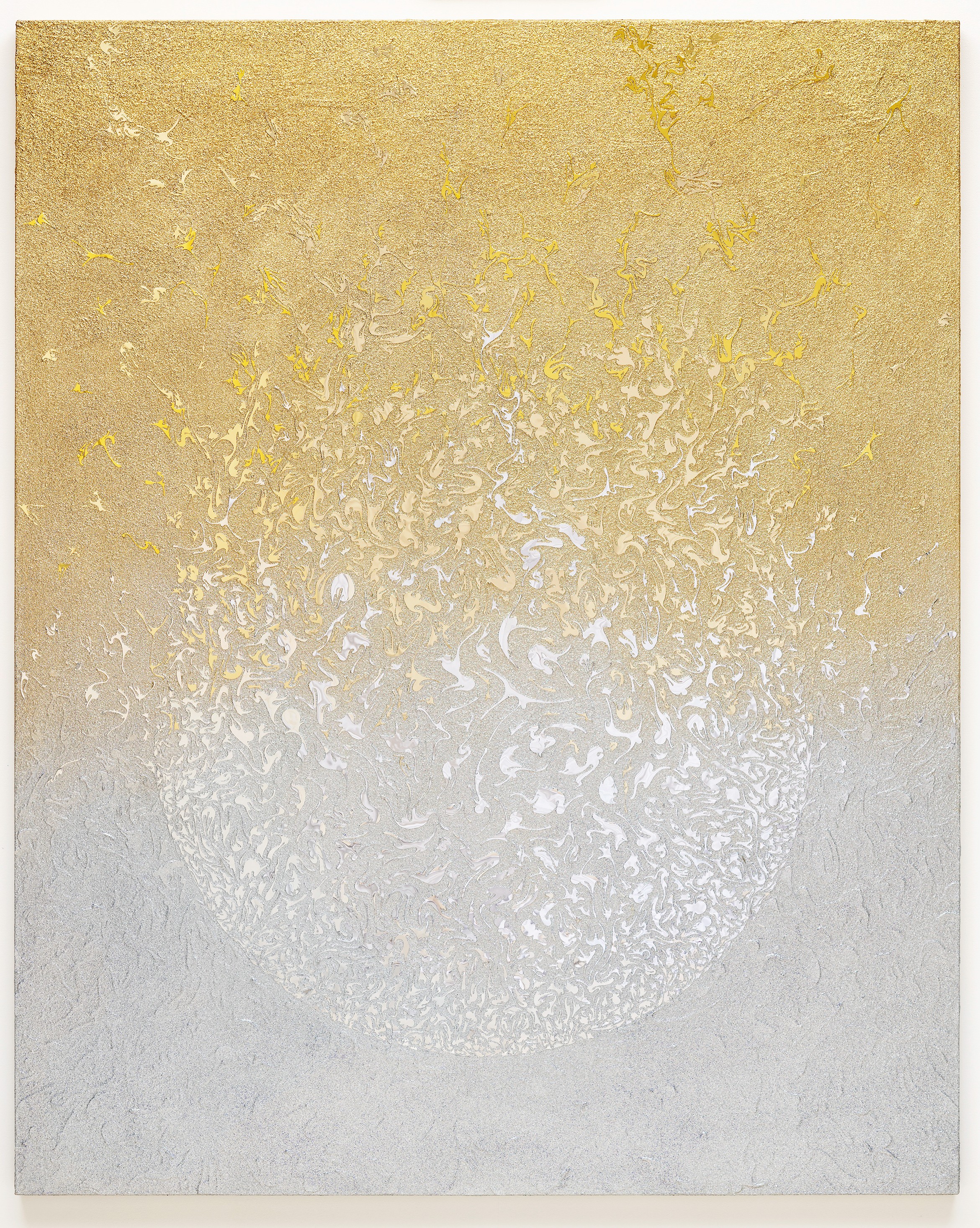 - Hand-cut mirror PET film, mixed media on canvas