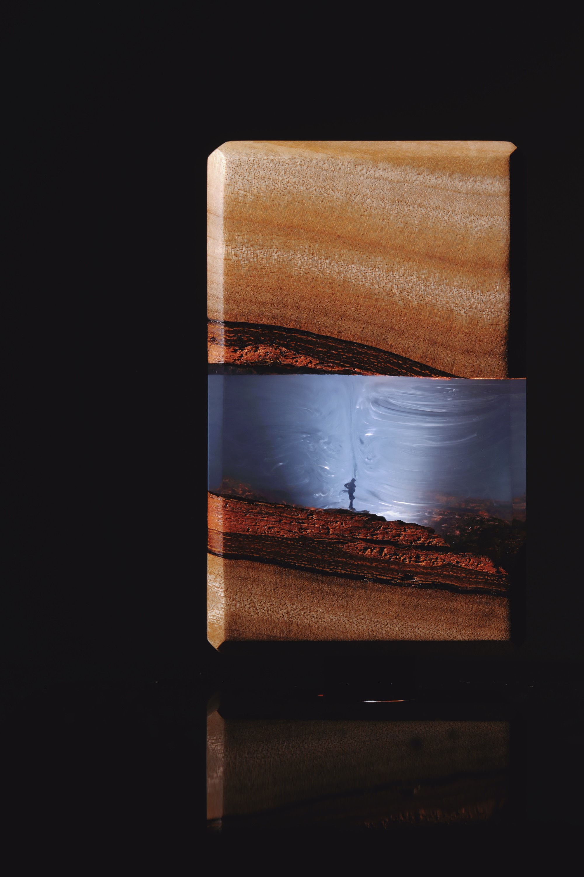 - Wood(sealed), Epoxy resin, LED