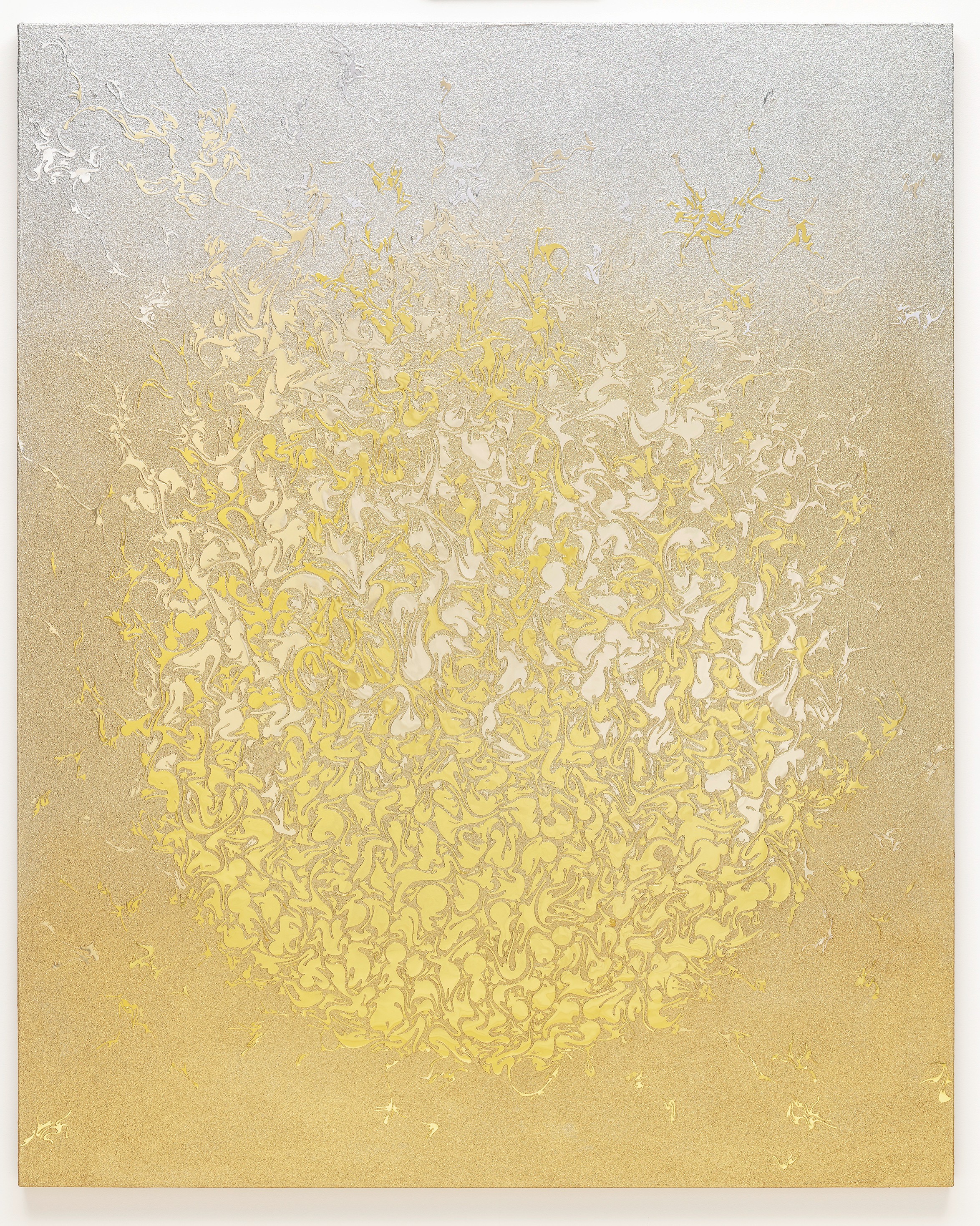 - Hand-cut mirror PET film, mixed media on canvas