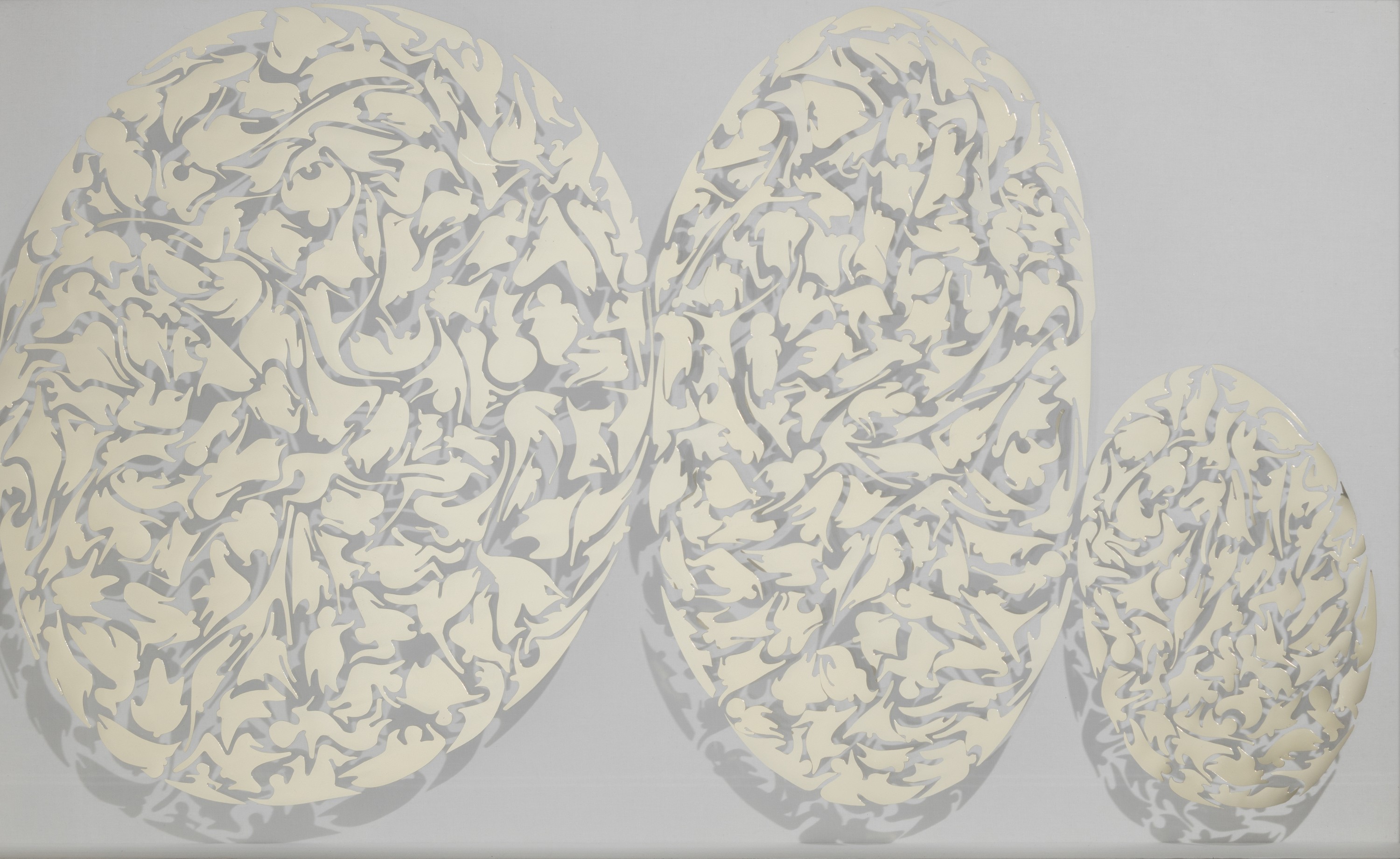 - Hand-cut mirror PET film and mixed media on canvas