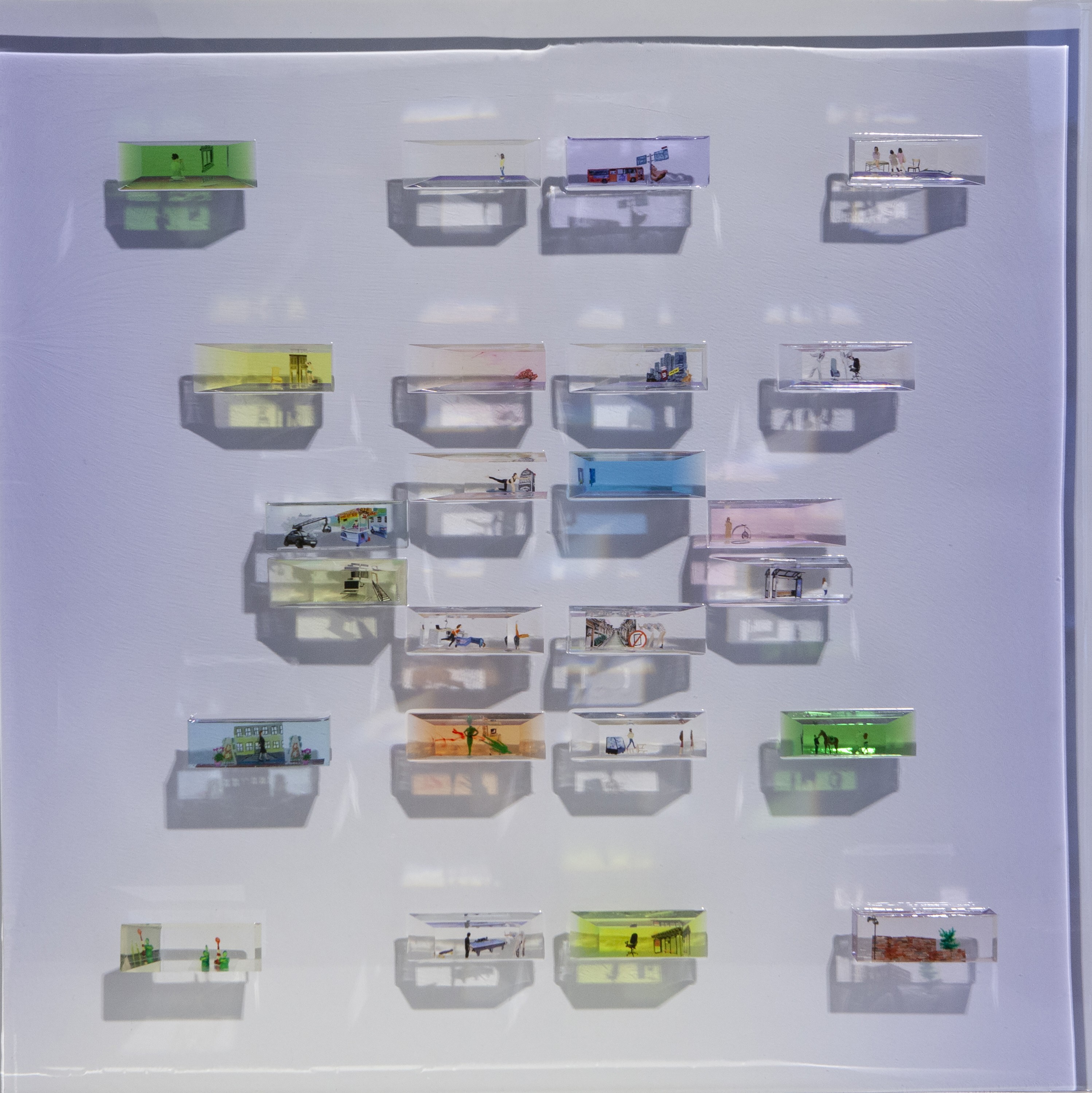 - Epoxy resin, acrylic paintings on overhead transparency, acrylic plate