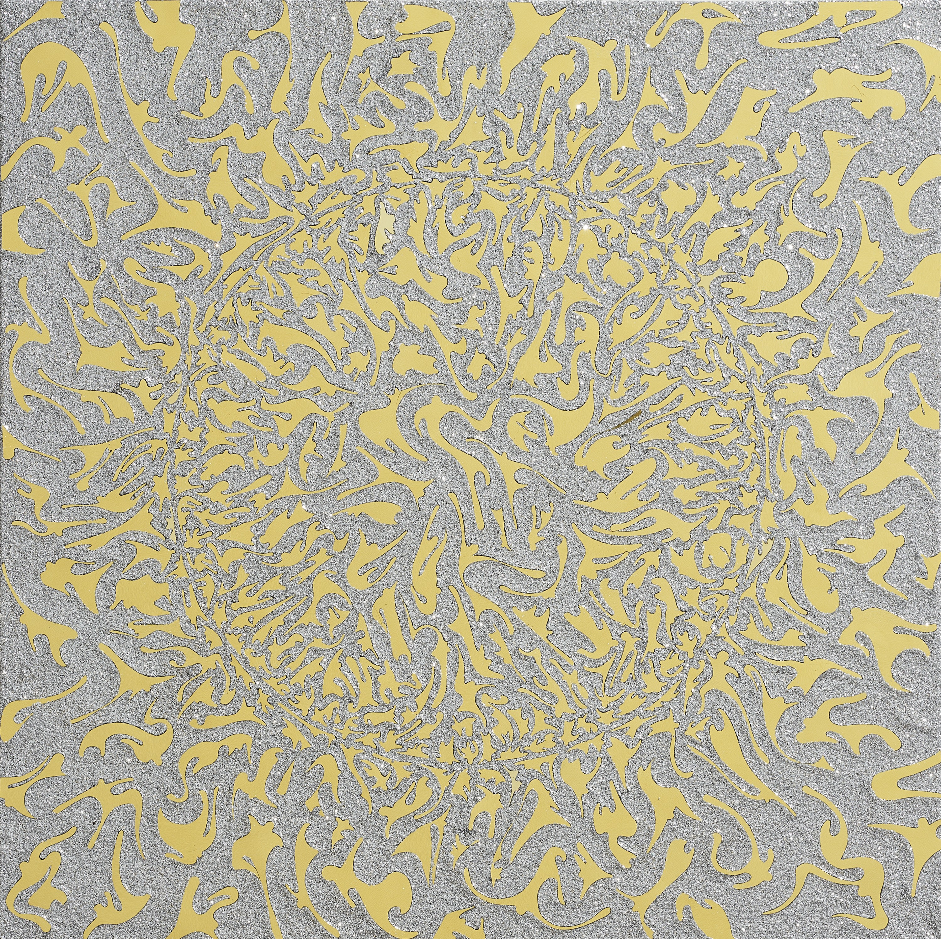 - hand-cut mirror film, mixed media on panel