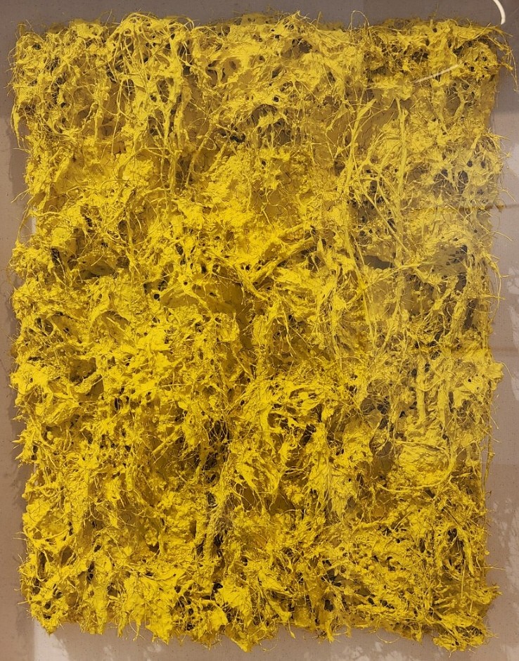 - Fibers, pigment, and mixed media on canvas
