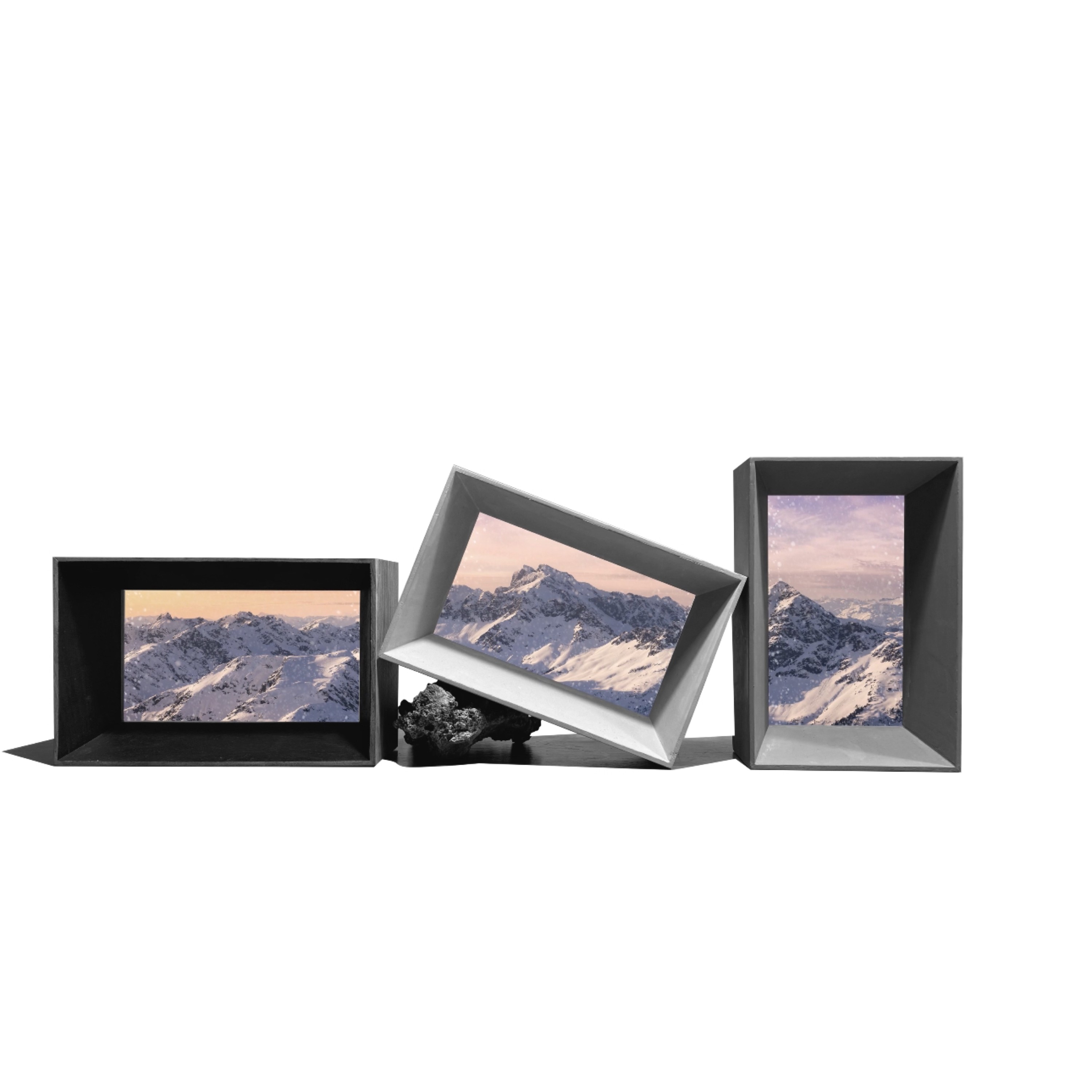- Sculpture with 3-channel video on LED screens (concreate, 10inch monitor)