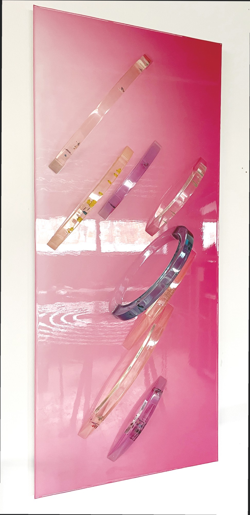 - Epoxy resin, acrylic paintings on overhead transparency, acrylic plate