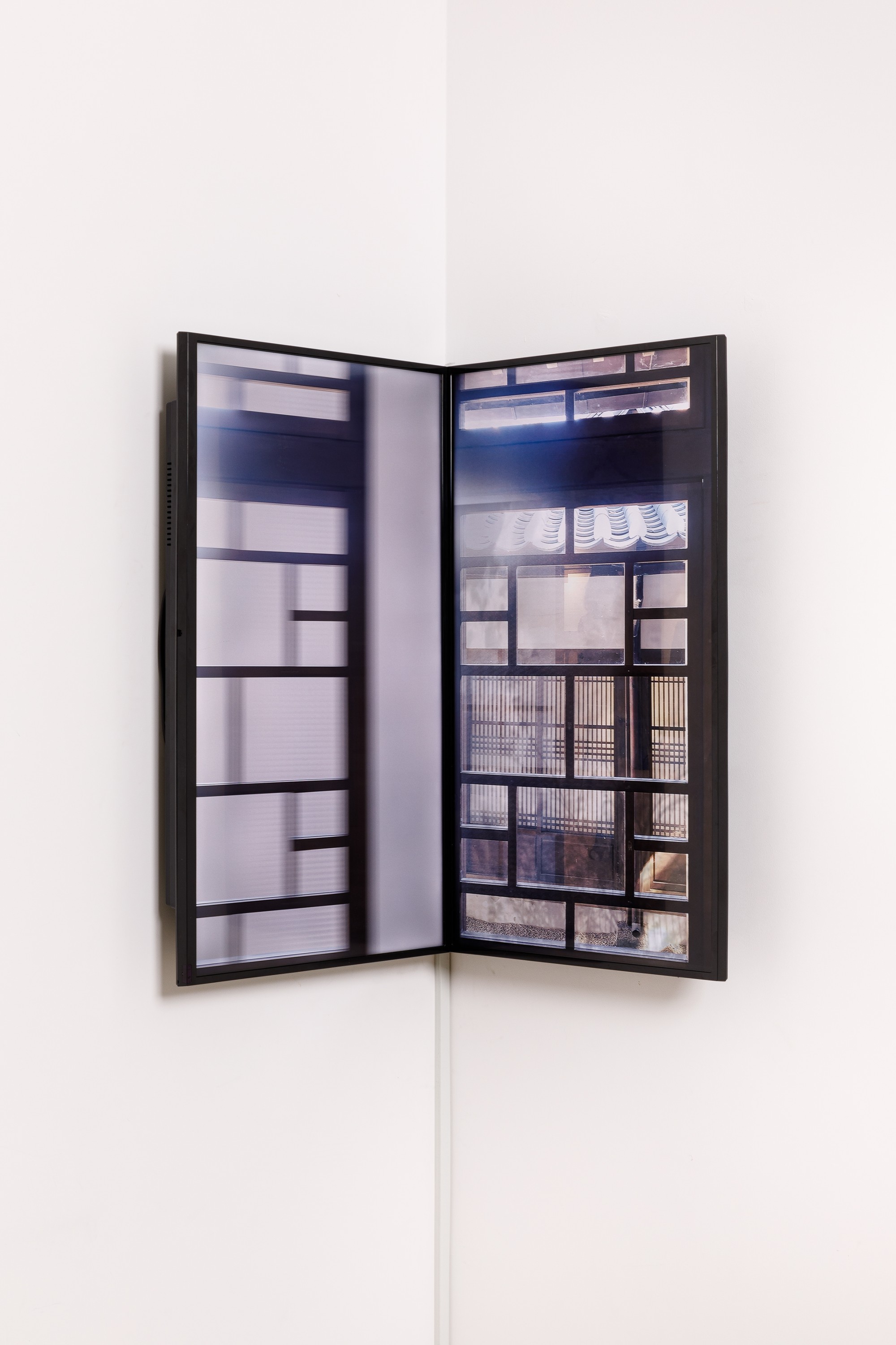 - Video sculpture, 43" LED monitor, 2-channel video
